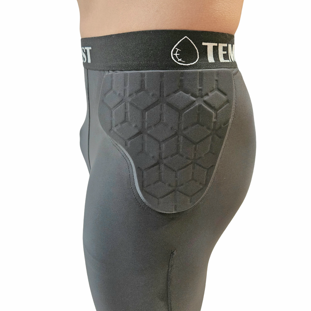 腰骨、尾骨、耐衝撃パッドが付いたインナースパッツ。